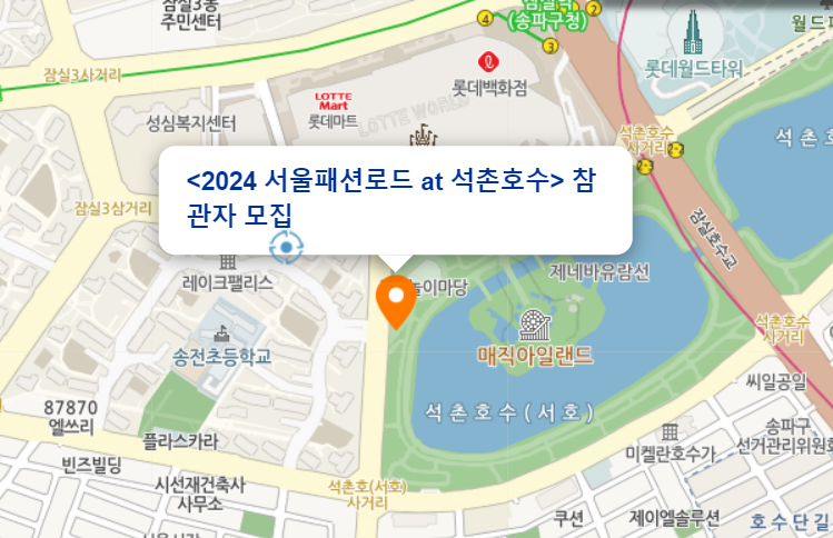 다양한 행사 및 축제 등이 있는 5월입니다. K팝, 드라마, 영화 등 한류가 인기가 늘어가는 만큼, K패션 또한 관심이 많아지고 있습니다. 이번 5월에 석촌호수에서 패션쇼를 무료로 개최합니다. 5월 19일에 신청마감하며 400명밖에 모집을 안하니 아래에서 서둘러 신청하셔서 멋진 패션쇼를 직관하시기 바랍니다.